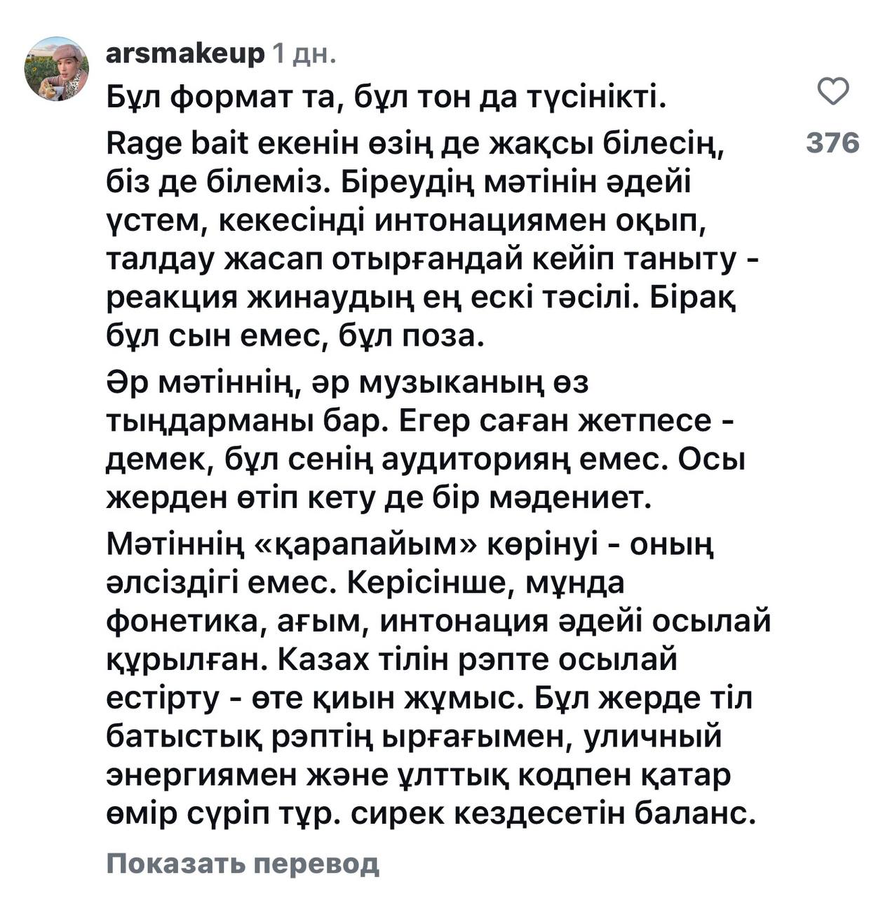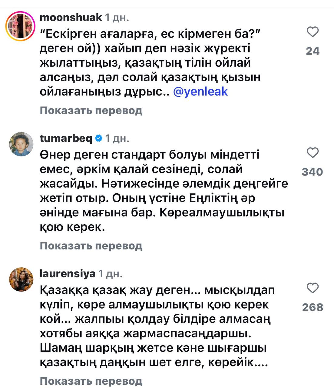 Соған қарамастан, Жандарбек Бұлғақов әрбір өнер адамы сынға дайын болуы тиіс екенін атап өтті әрі қазақ тіліне алаңдайтынын жеткізді. Ал Еңлік Құрарбек оның шығармашылығымен толық танысқан тыңдарман әндердің мағынасын түсінетінін айтты. Ол мәтінде қате бар екенін мойындағанымен, шын ниетпен ескерту жасағысы келсе, оны ашық желіде мысқылдамай, жеке түрде айтуға болатынын жеткізді.