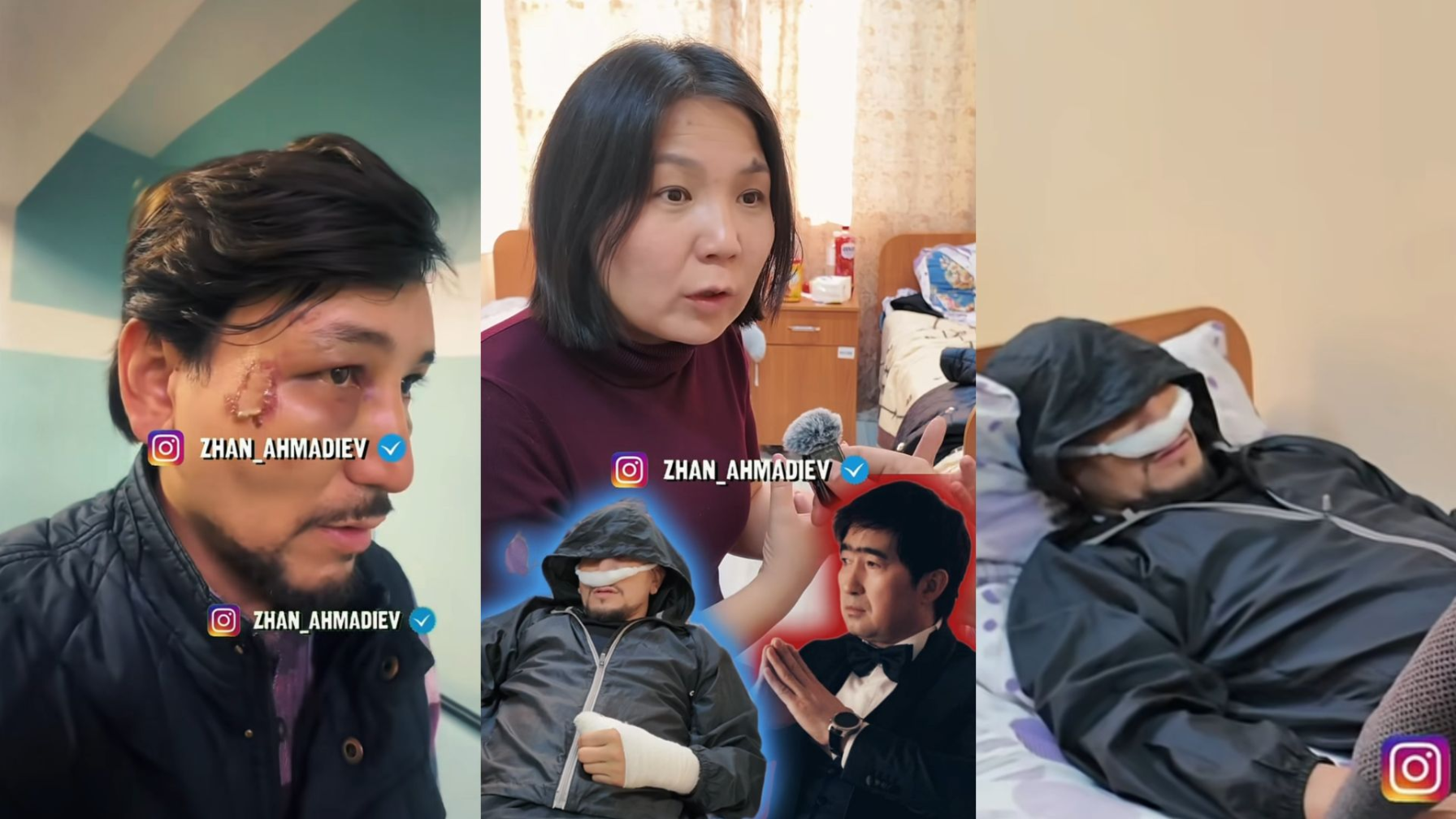 Ауруханаға әншінің көңілін сұрай барған Жан Ахмадиев пен танымал заңгер Инга Иманбай жәбірленушінің денсаулығы туралы видео жүктеді.