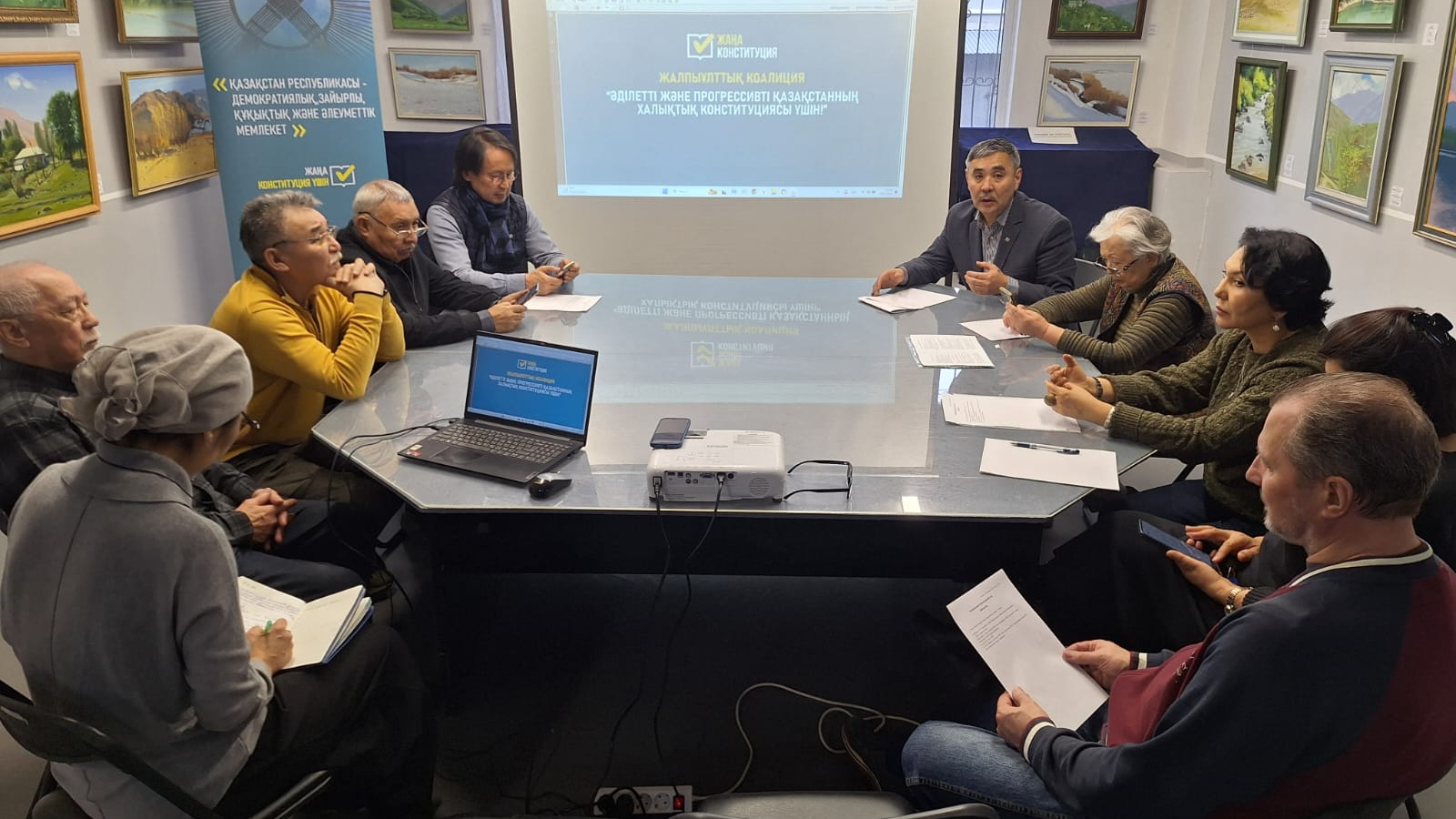 Қазақстан Суретшілер одағы ғимаратында елдің жаңа Конституциясы жобасын талқылау өтті. Іс-шараға өнер қайраткерлері, сондай-ақ Алматы қаласы Қоғамдық кеңесінің мүшесі Әкежан Кеңесов қатысты.