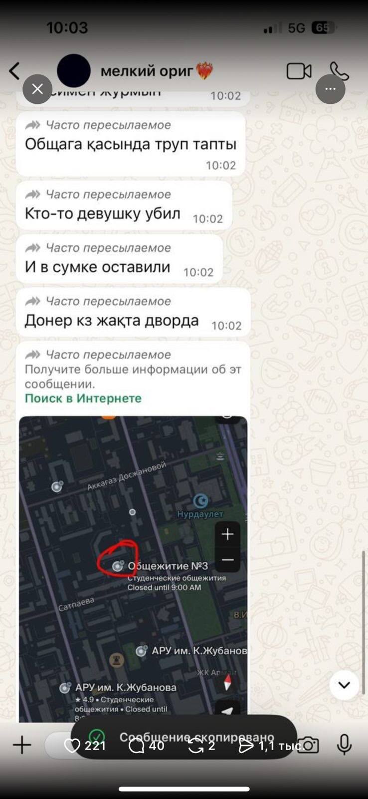 «Мәйіттің табылу дерегі бойынша полиция қылмыстық іс қозғады. Оқиғаның барлық мән-жайын анықтау үшін қажетті тергеу және жедел-іздестіру іс-шаралары кешені жүргізілуде. Тергеу мүддесіне байланысты өзге ақпарат жария етілмейді», – деп мәлімдеді департамент өкілдері.