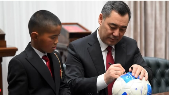 Қырғызстан президенті Садыр Жапаров Ош облысы, Қара-Құлжа ауданына қарасты Коо-Чаты ауылынан келген оқушы Нұрзаман Алмазбековті қабылдады, деп жазады Alash.KZ.