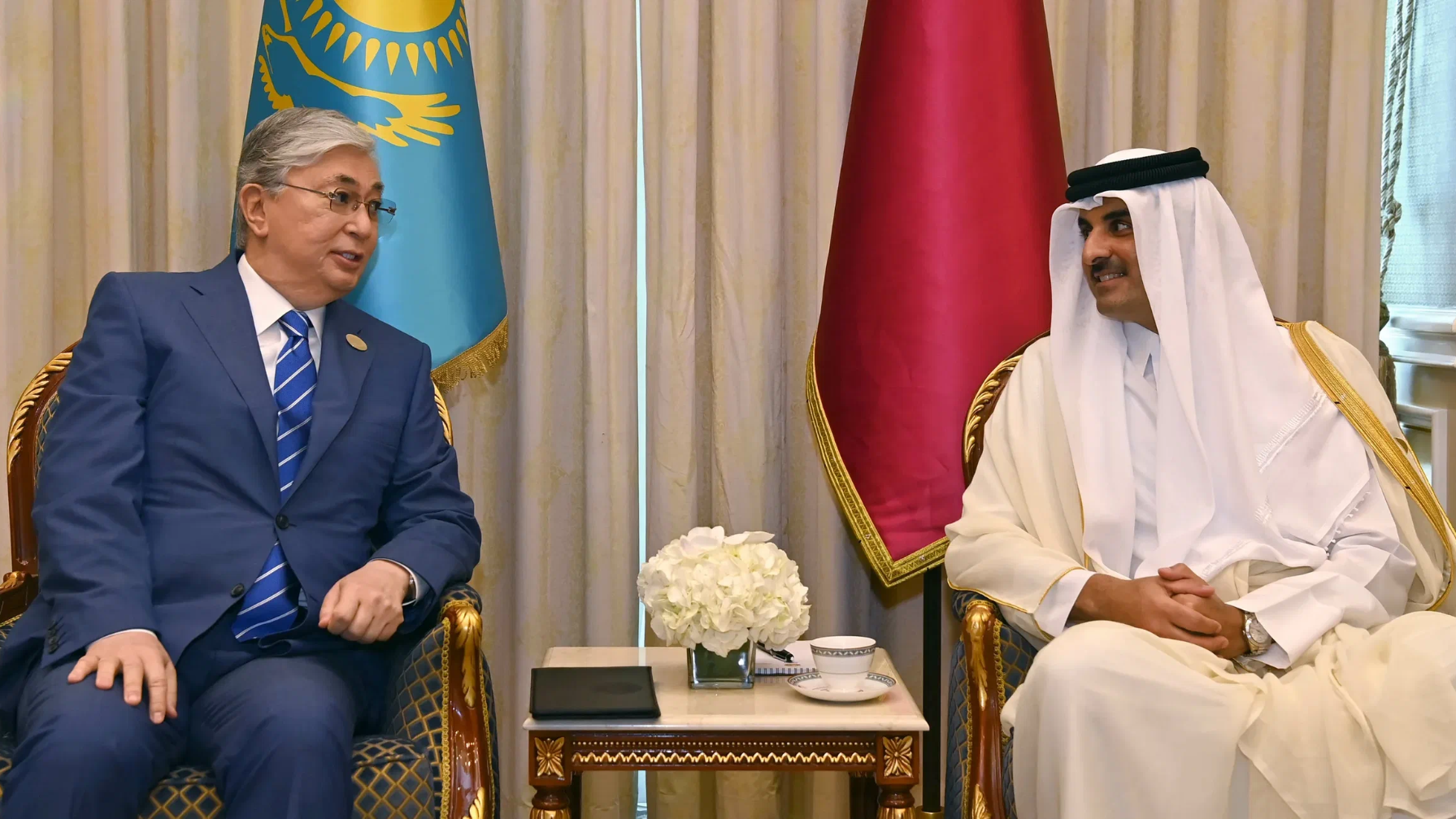 Ақорданың хабарлауынша, мемлекет басшысы Қасым-Жомарт Тоқаев шейх Тәмим бен Хамад Әл Тәнимен әңгімелесу барысында Таяу Шығыстағы ахуалды талқылады.